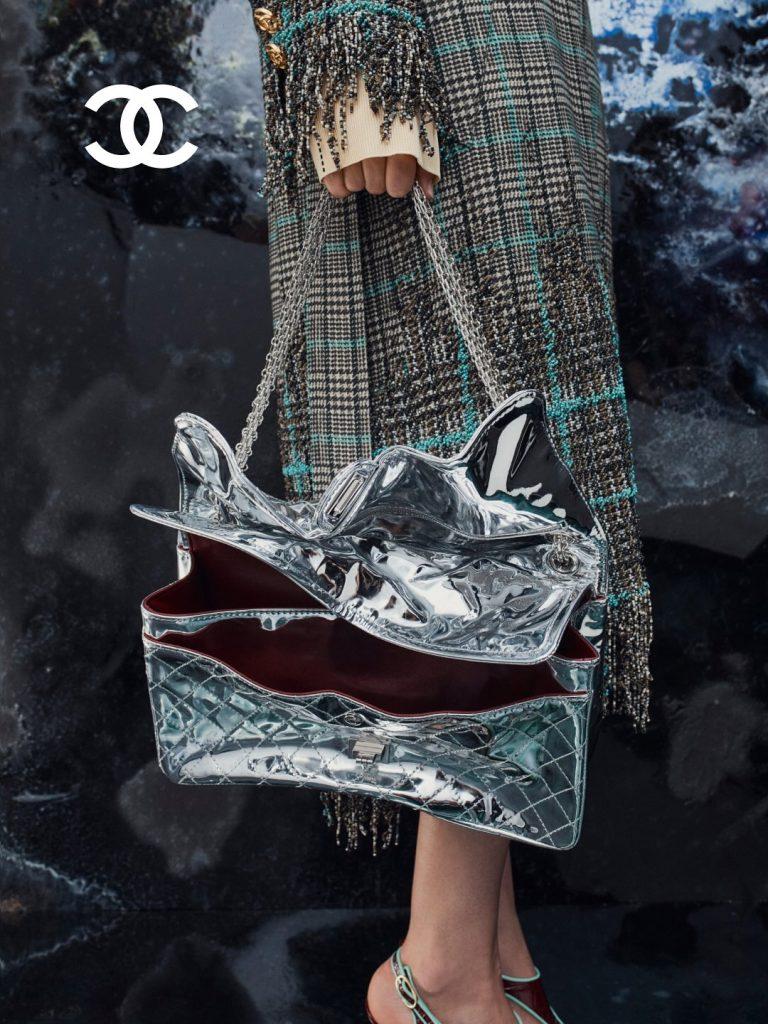 Sotto la sua direzione artistica, l’iconica borsa si mostra aperta, deformata, quasi dimenticata in fondo a un armadio umido. In questa nuova versione, Blazy dà una sua definizione personale della bellezza e dimostra che una borsa Chanel, indipendentemente dal suo stato, può essere portata con orgoglio. Una collezione seguita da quelle dei Métiers d’Art, che pongono le basi di un nuovo capitolo per la Maison.